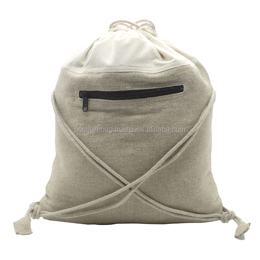 Hemp Backpack Woven Heavy Duty Plain Book Bag Day Pack Drawstring Closure-Ethnic Handmade Bohemian Style Eco-Friendly