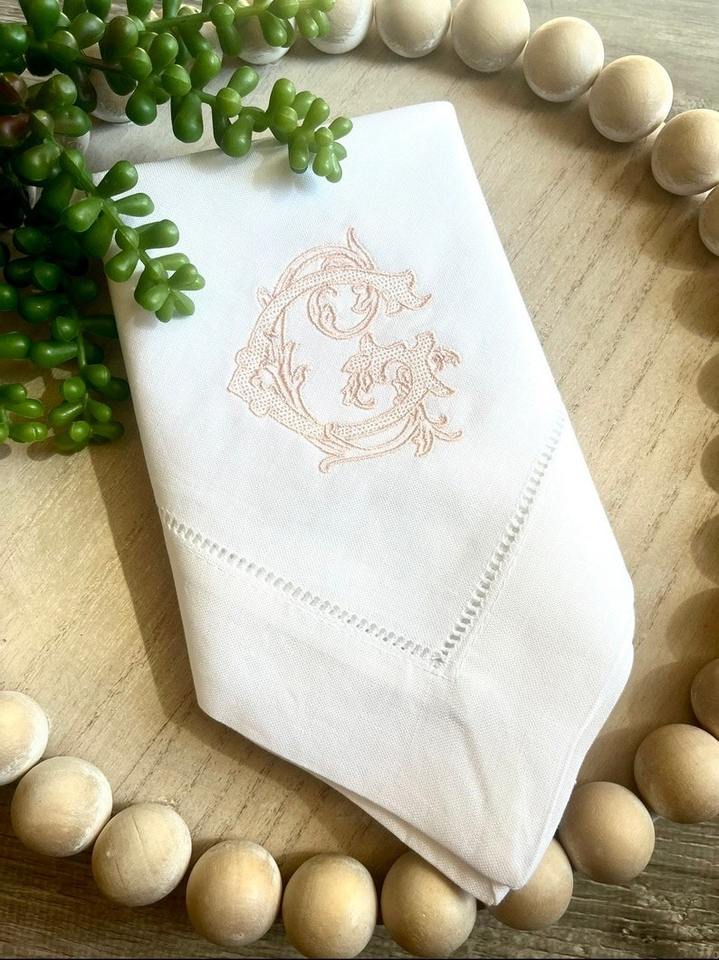 Hemstitch Tea Napkin High Quality White Fine Dining Japan Style Linen Hand Embroidered Monogrammed Customized Color Size Napkins