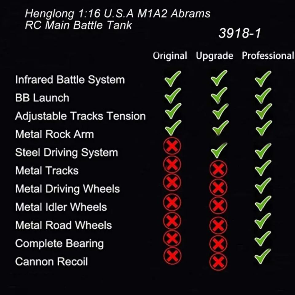 HengLong 3918-1 PRO M1A2 Abrams Metal Tracks Driving Motor Idlers 1/16 Smoke TK 7.0 BB Airsoft Remote Control RC Tank Heng Long