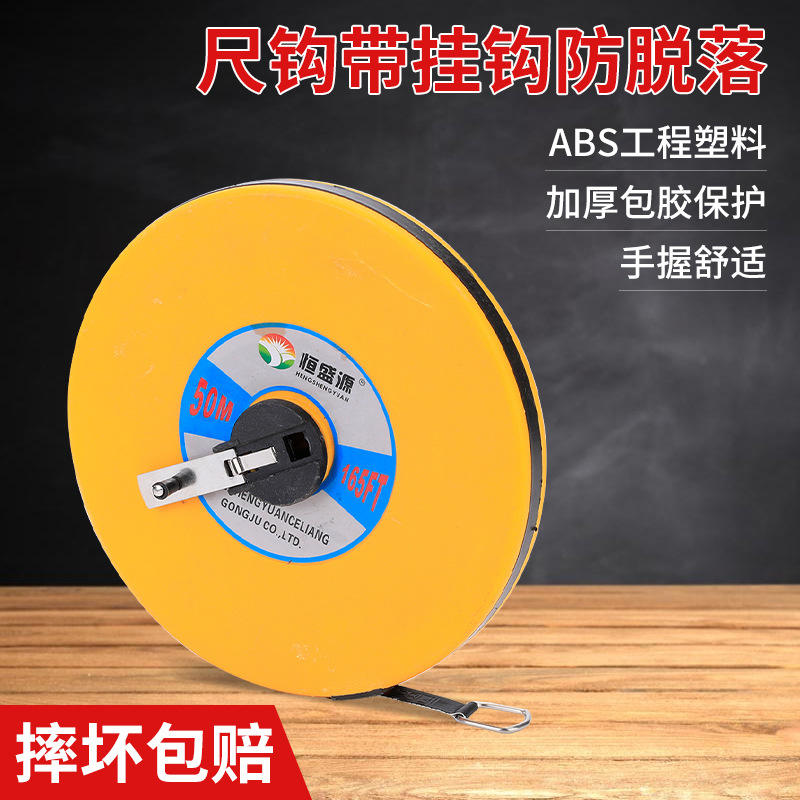 Hengshengyuan 50 Ft Self-Winding Tape Measure Fiberglass Blade Metric Manual Return Lever Lock