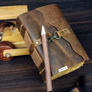 Heritage Handikrafts Leather Journal for Men, Handmade Vintage Journals Women Antique/Vintage Deckle Edge, Brown, 5x7'
