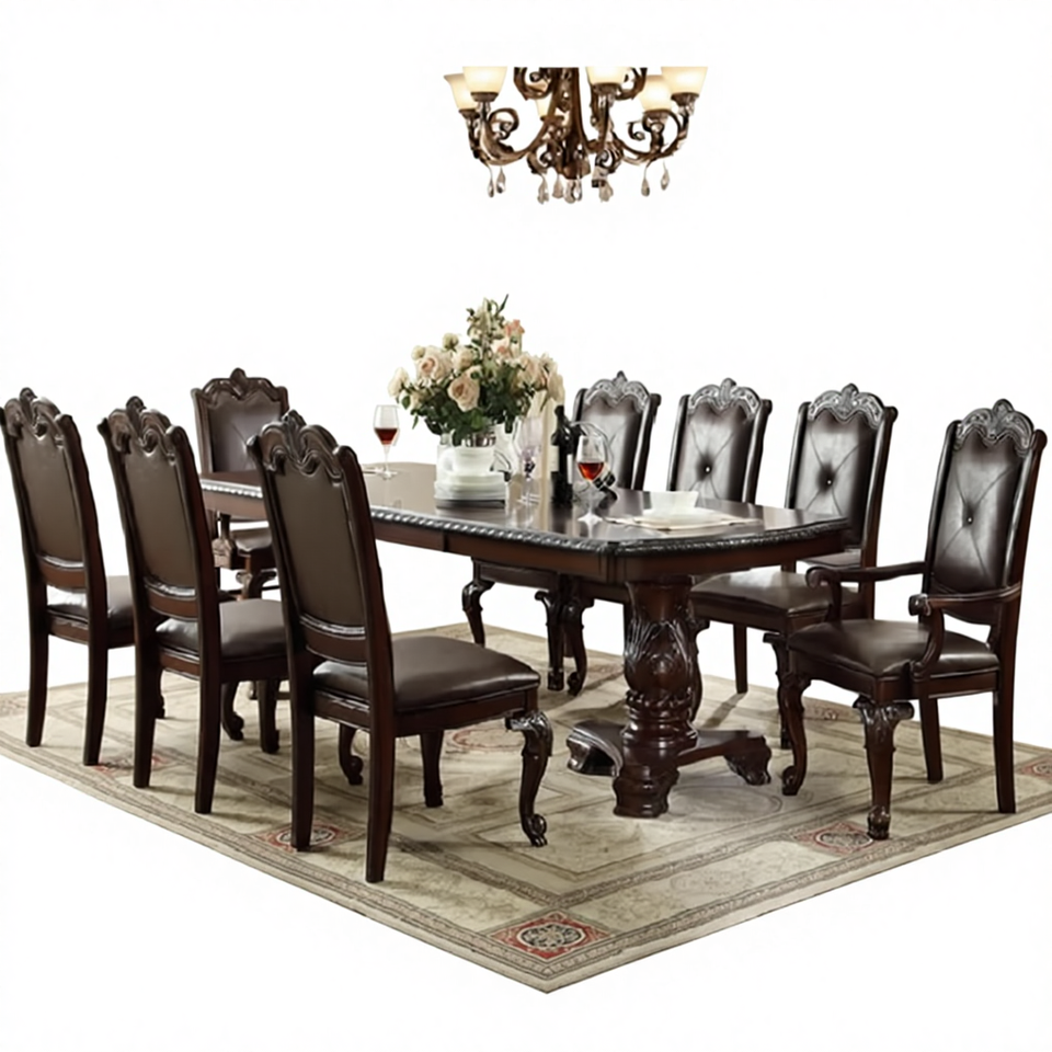 Heritage Style Brown Antique Leather Tufted Dining SetProduct name
