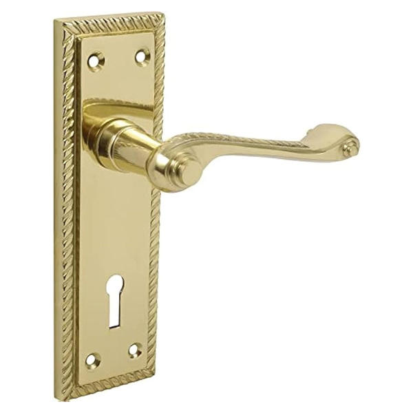 Heritage Brass Lever Door Handle Set Brass Construction with Elegant Scroll Design Latch Lock Bathroom Privacy Feature