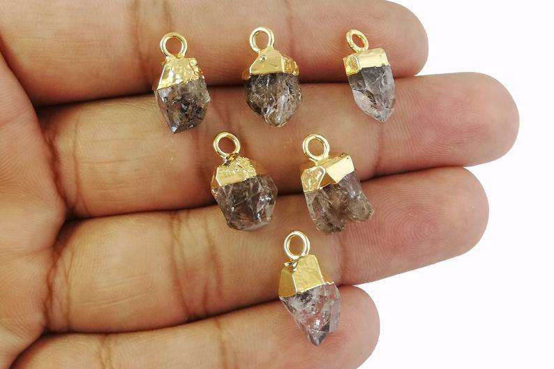 Name:Herkimer Diamond Gold Electroplated Pendant - April birthstone charm