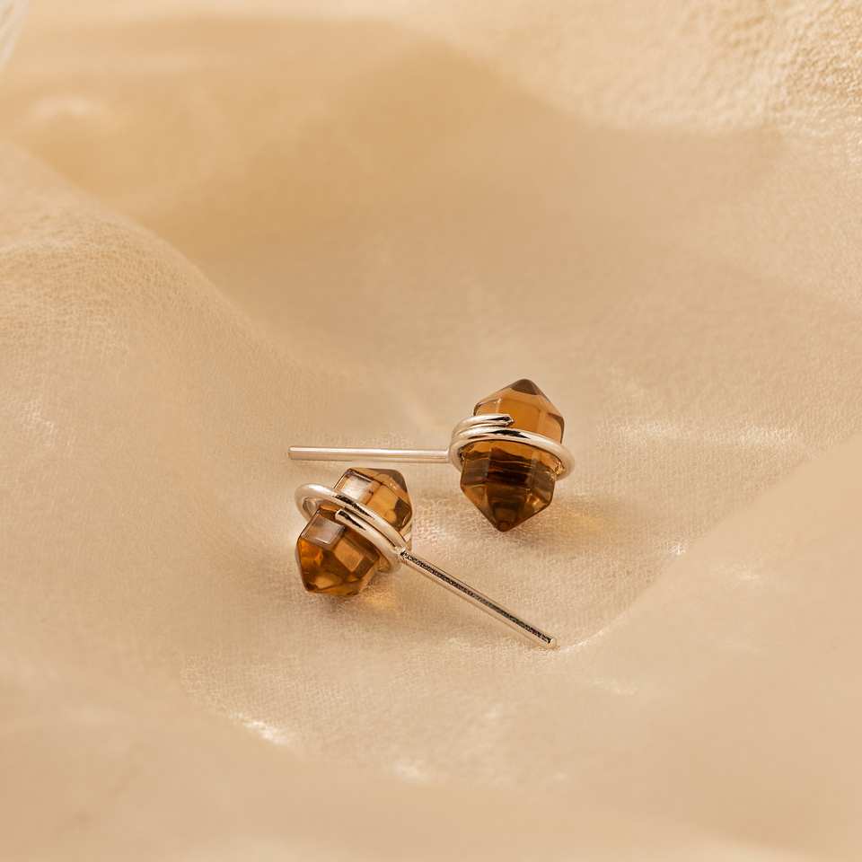 Herkimer Smoky Quartz Earrings Unique 925 Silver Gold Plated Smoky Quartz Crystal Stud Trendy Rose Gold Unique Jewelry Gift for
