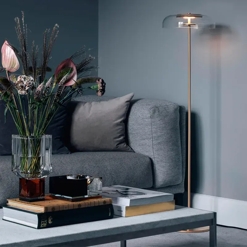 Gold Luxe Minimalist Modern Glass and Metal Floor Lamp with Warm White for Accent Lighting Reading Nook Lamp Office Lamp
