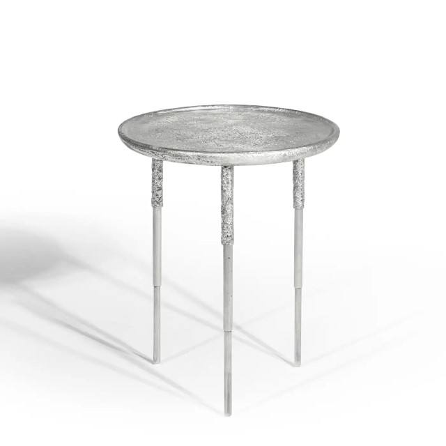 Heron Side Table Silver Modern Accent Table Handcrafted Metal End Table Unique Design Living Room Furniture Contemporary Style