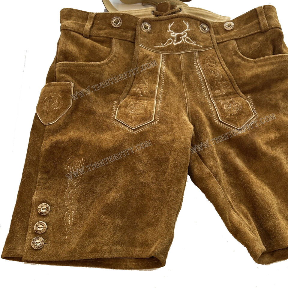 Herren kurze Lederhose / German Oktoberfest Festival Costumes Lederhosen Golden Brown / high Quality Bavarian short lederhosen