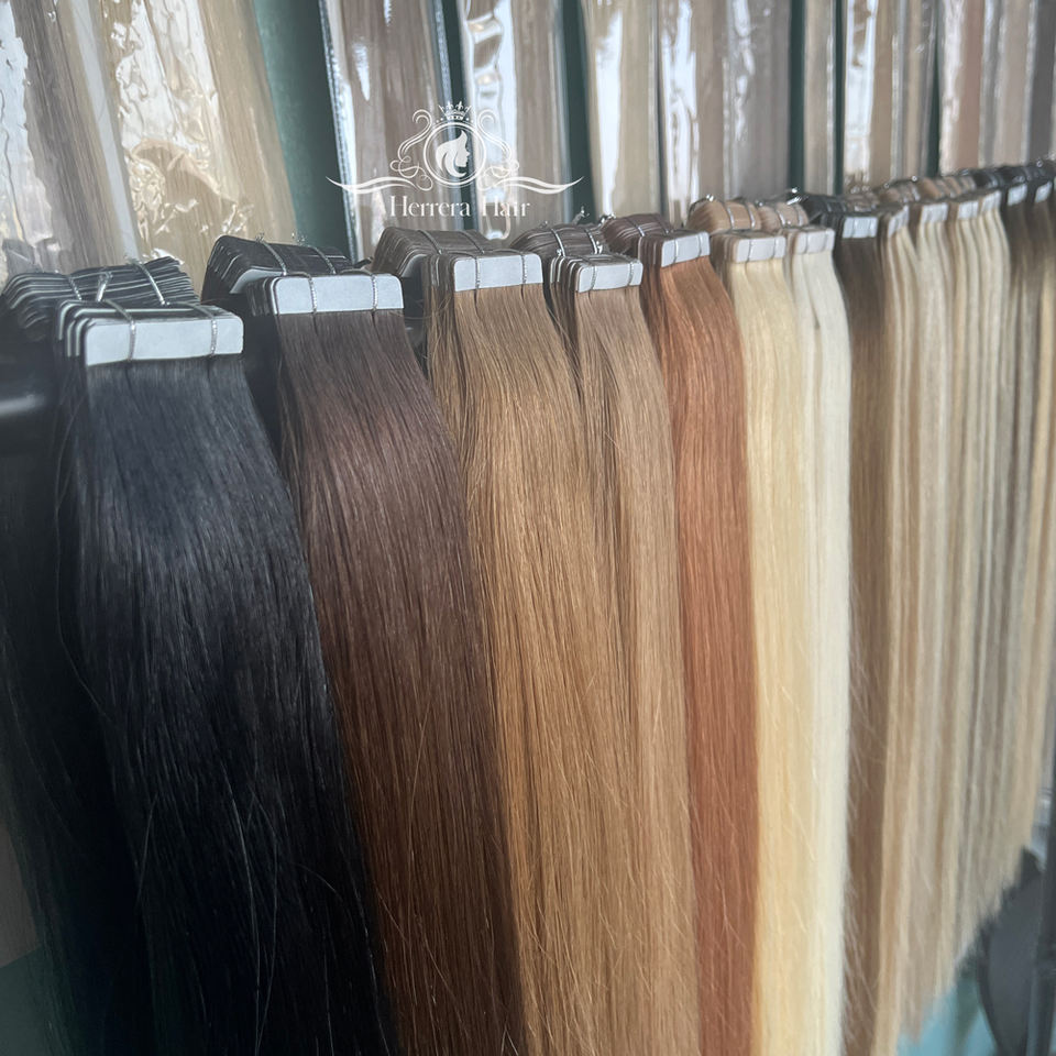 Herrera Tapein Hair Extensions Ombre Blonde Golden Extensiones Cabello Humano Natural 100Humano Remmy Russian Tape In Human Hair