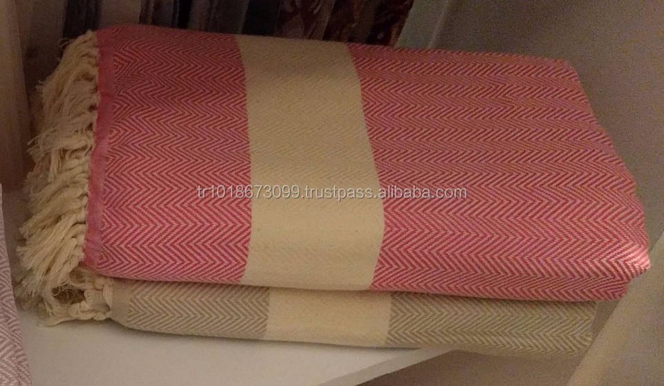 Herringbone Turkish Towel Throw Beach Blanket 100% Cotton, Classic Collection Throw Blanket
