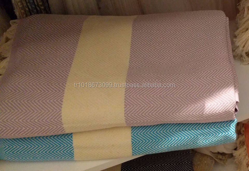 Herringbone Turkish Towel Throw Blanket Beach Home Use 100% Cotton Classic Collection Throw Blanket