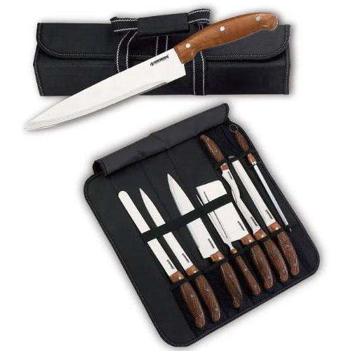 Herzberg HG-K9W 9-Piece Knife Set with Roll-Up Carry Bag for Kitchen & Tableware