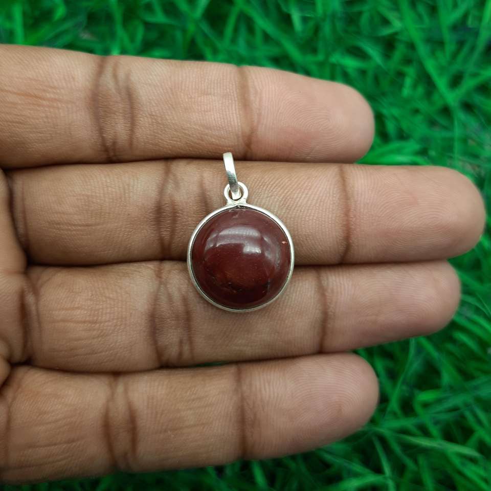 Hessonite 925Sterling Silver Gemstone Pendant Round Cabochon Natural Stone Jewelry Elegant Handcrafted Design Children's Jewelry