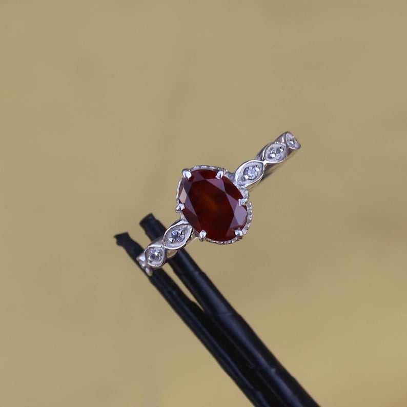 Hessonite Garnet Ring Oval Orange Gemstone 925 Sterling Silver Handmade Birthstone Jewelry Gift