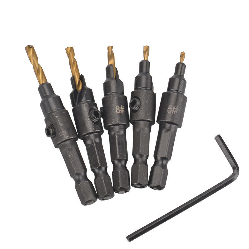 Hex Shank Countersink Drill Bit Set Titanium Plated Step Drill Twist Hole Opener For Steel Woodworking Tool Kit