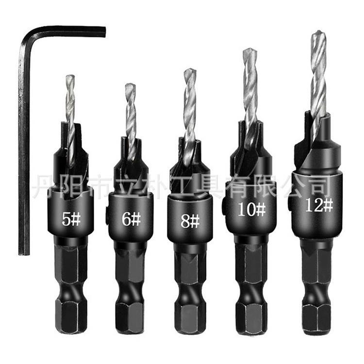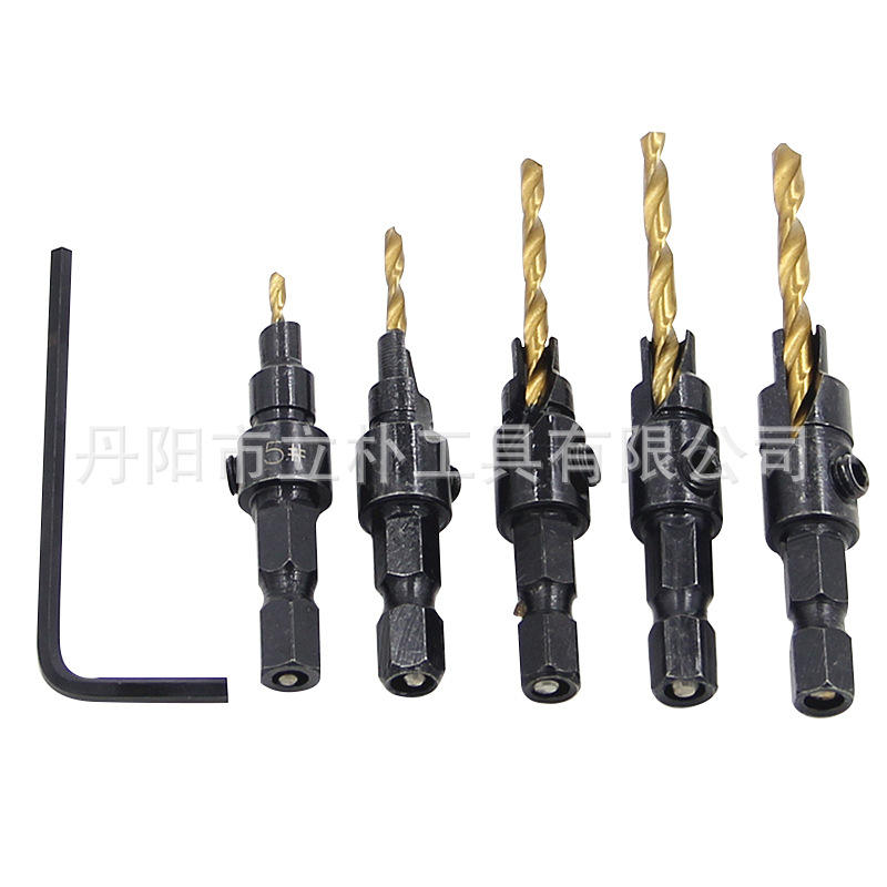 Hex Shank Countersink Drill Bit Set 6 8 10 12 With Screwdriver For Nonferrous Metals Bright Finish