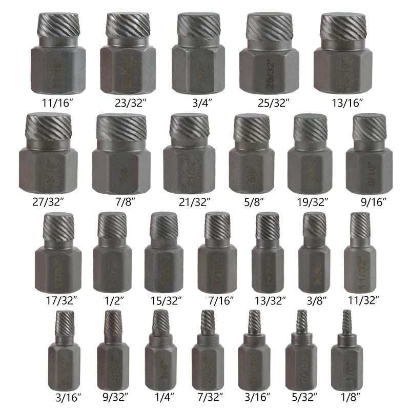 Hex Shank Screw Extractor Set 25pc Imperial Size For Damaged Bolt Removal