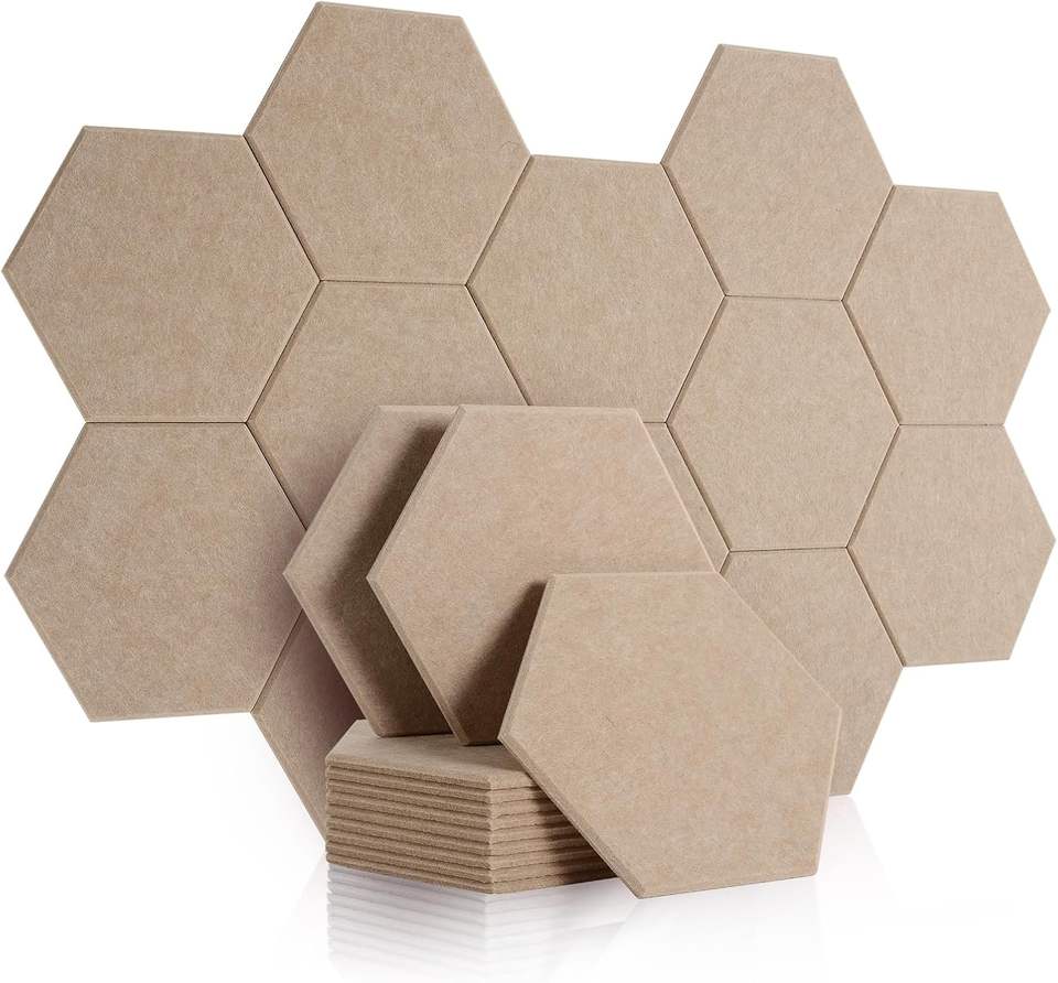 Hexagon Acoustic Wall Panels, Self-Adhesive, Superior Density Noise Control, Space-Saving Solution, for Home & Studio Decor