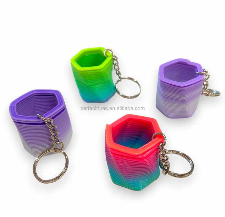 Hexagon Metal UV Printing Durable Magic Spring Keychain Fidget Sensory Toy for School Activities