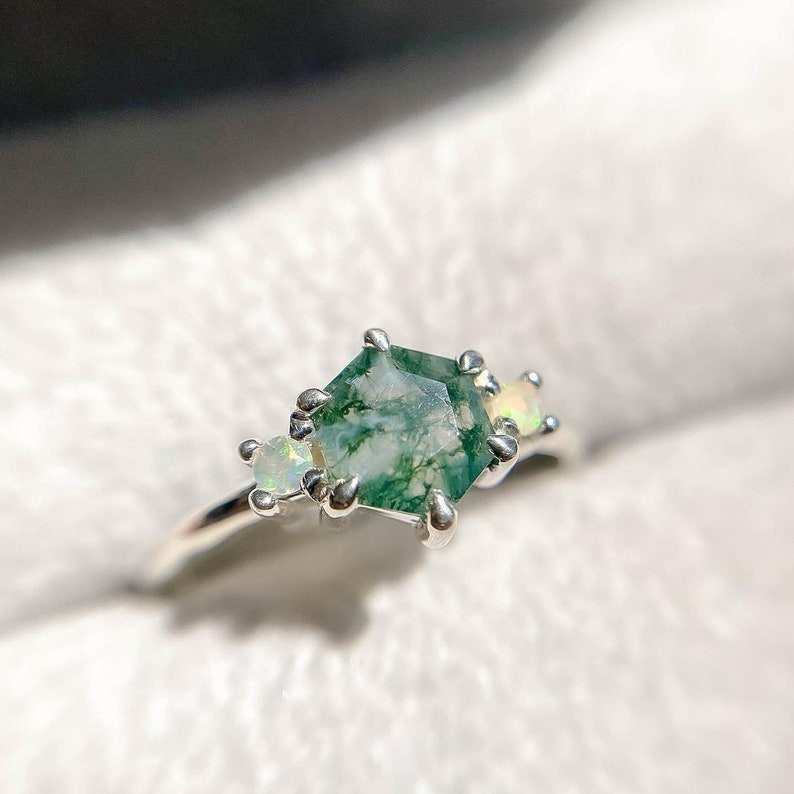 Keyword:Genuine Moss Agate Band Ring Nature Inspired Stone Green Patterns