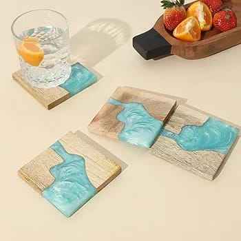 Hexagon Pattern Wood and Resin Coaster Set 3D Craft Model Table Top Accessories