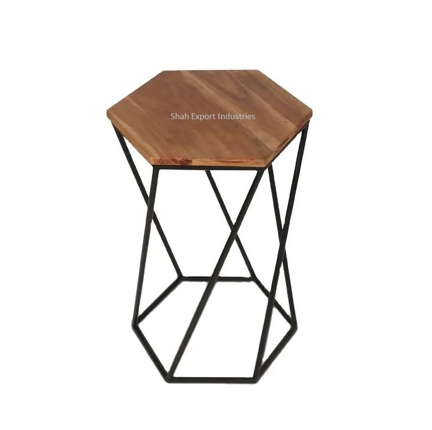 Hexagon Shape Iron And Wood Handmade Side Table Latest Coffee Table with Black & Natural Finished Home Decor Furniture