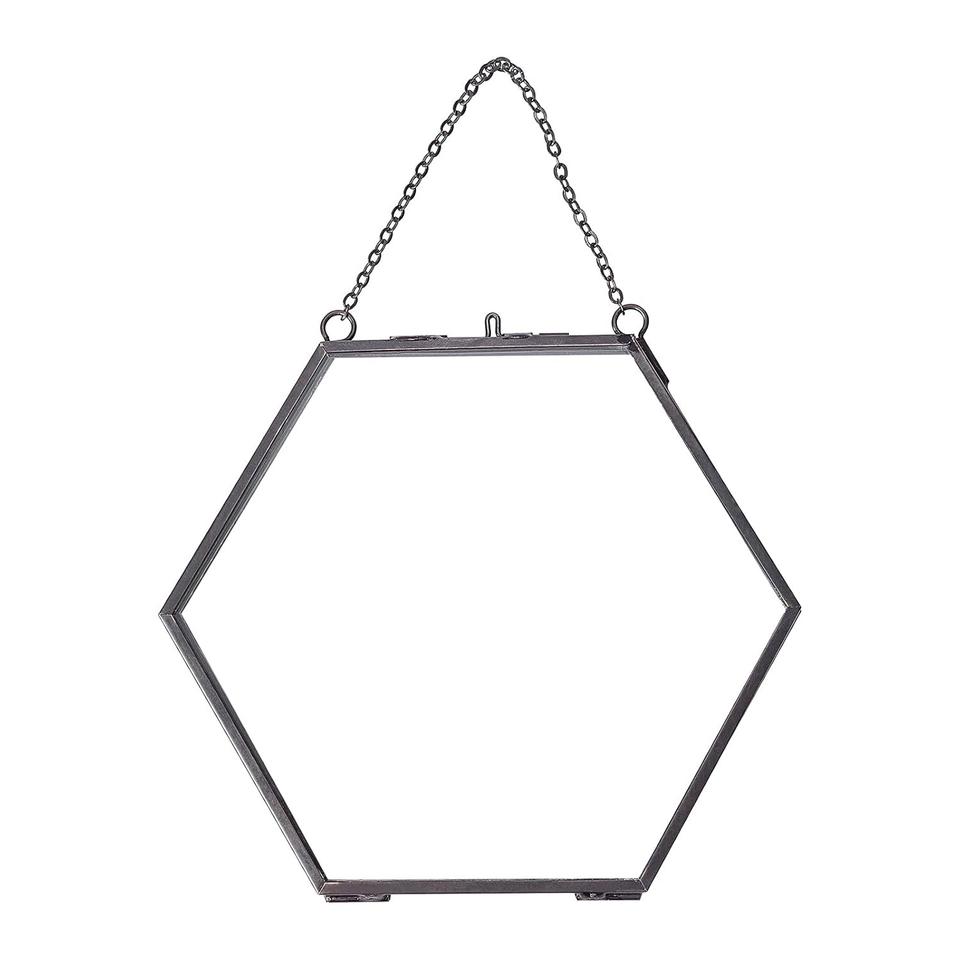 Hexagon-Shaped Tabletop Glass Photo Frame, Powder-Coated Metal Floating Display Frame for Pictures, Artwork & Pressed Flowers