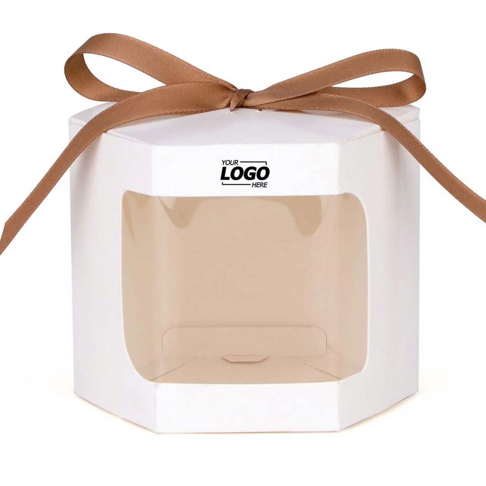 Hexagonal Gift Boxes with Display Windows, Premium Paper Boxes with Lids for Crafting, Cakes, Candy for Wedding Party