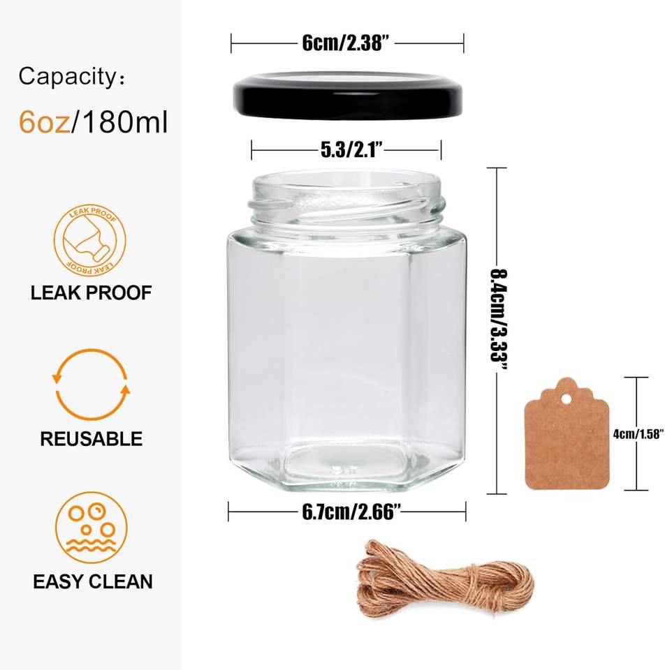 Hexagonal Glass Honey Jars 45ml to 730ml for Jelly Olive Oil Baby Food Sugar with Box Packing