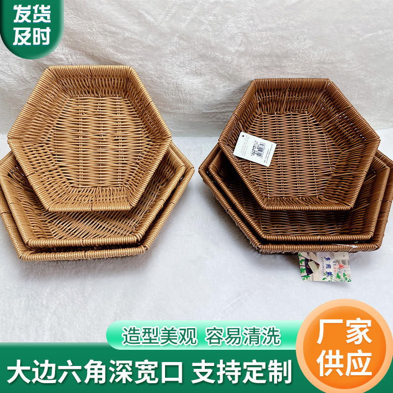 Hexagonal Rattan Woven Basket 2.0-3.0L Handmade Storage For Snacks Food Container