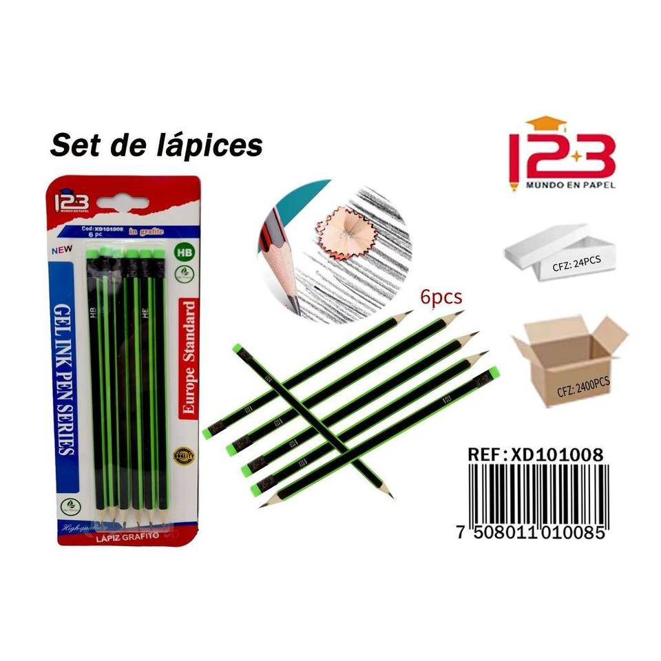 Hexagonal School Wood Pencil with HB Lead Hardness Color Lined Paper and Plastic Material Includes Eraser