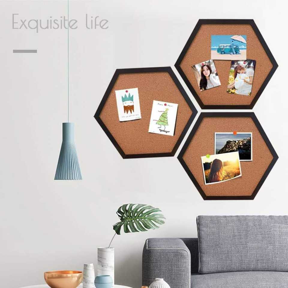 Hexagonal wooden frame message board tile cork bulletin board customization bulletin boards