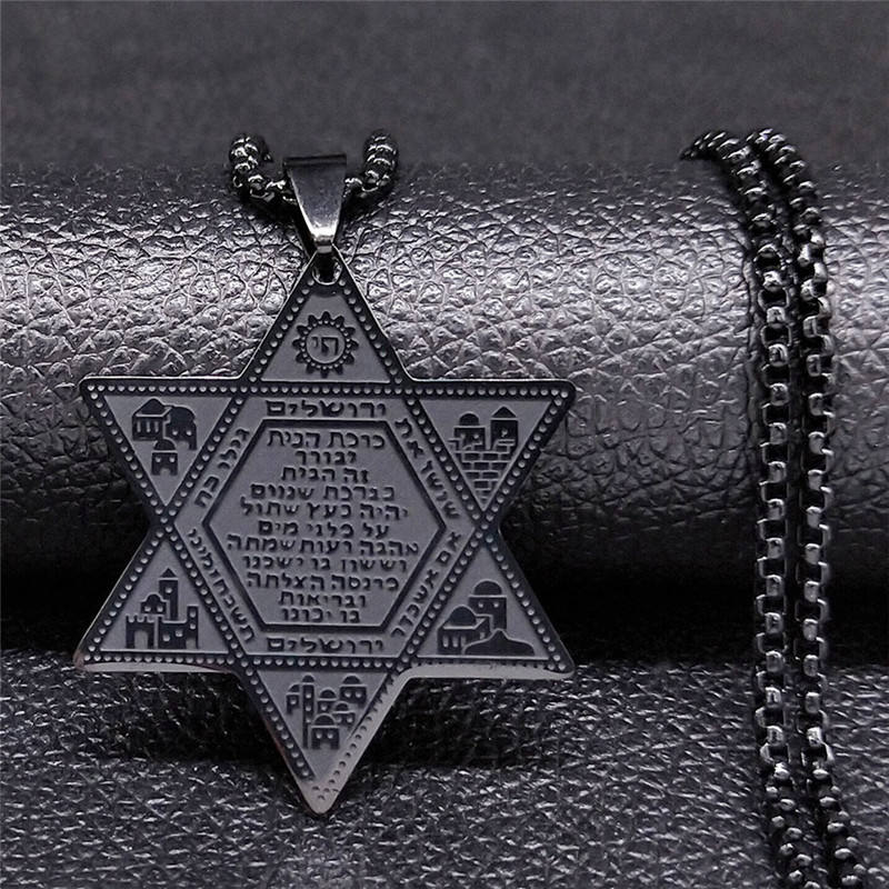 Hexagram Pendant Necklace for Women Men Stainless Steel Star of David Solomon Powerful Protection Amulet Jewish Jewelry