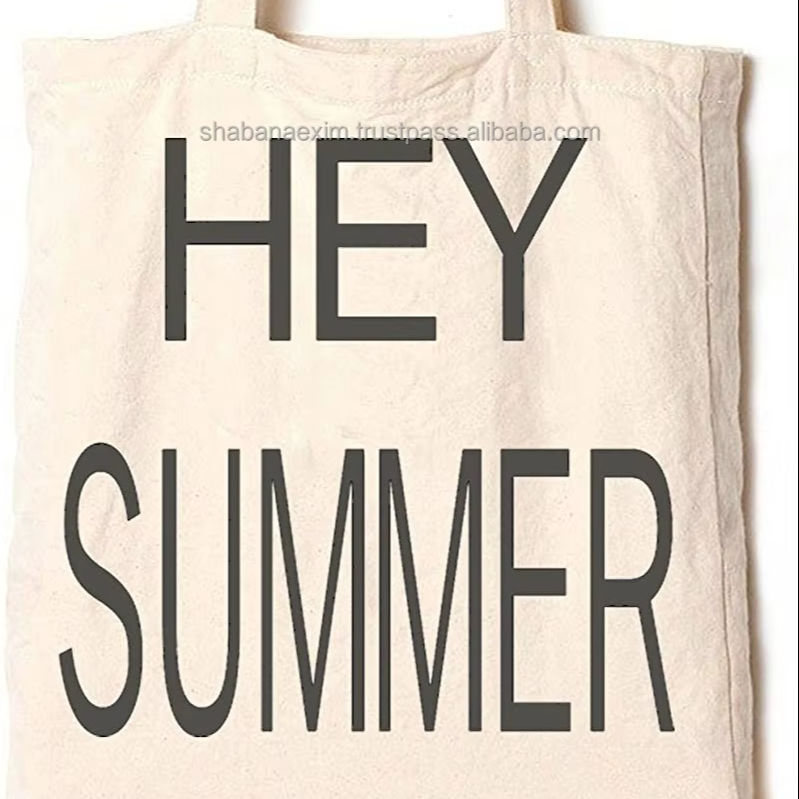 Hey Summer Print Cotton Tote Canvas Bag Lightweight Daily Outgoing Use Handmade Storage Clothes Bag on Cheap Price