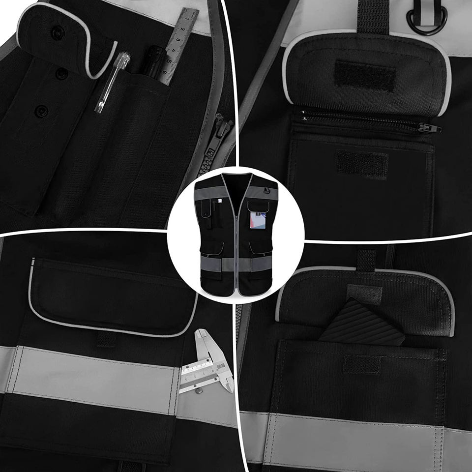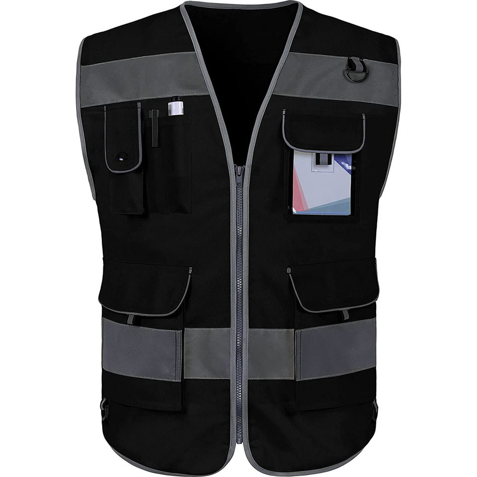 Hi Vis 100% Polyester Jackets Workwear Vest Multi Pocket Silver Tape Waterproof Back Customizable Reflective Safety Clothing