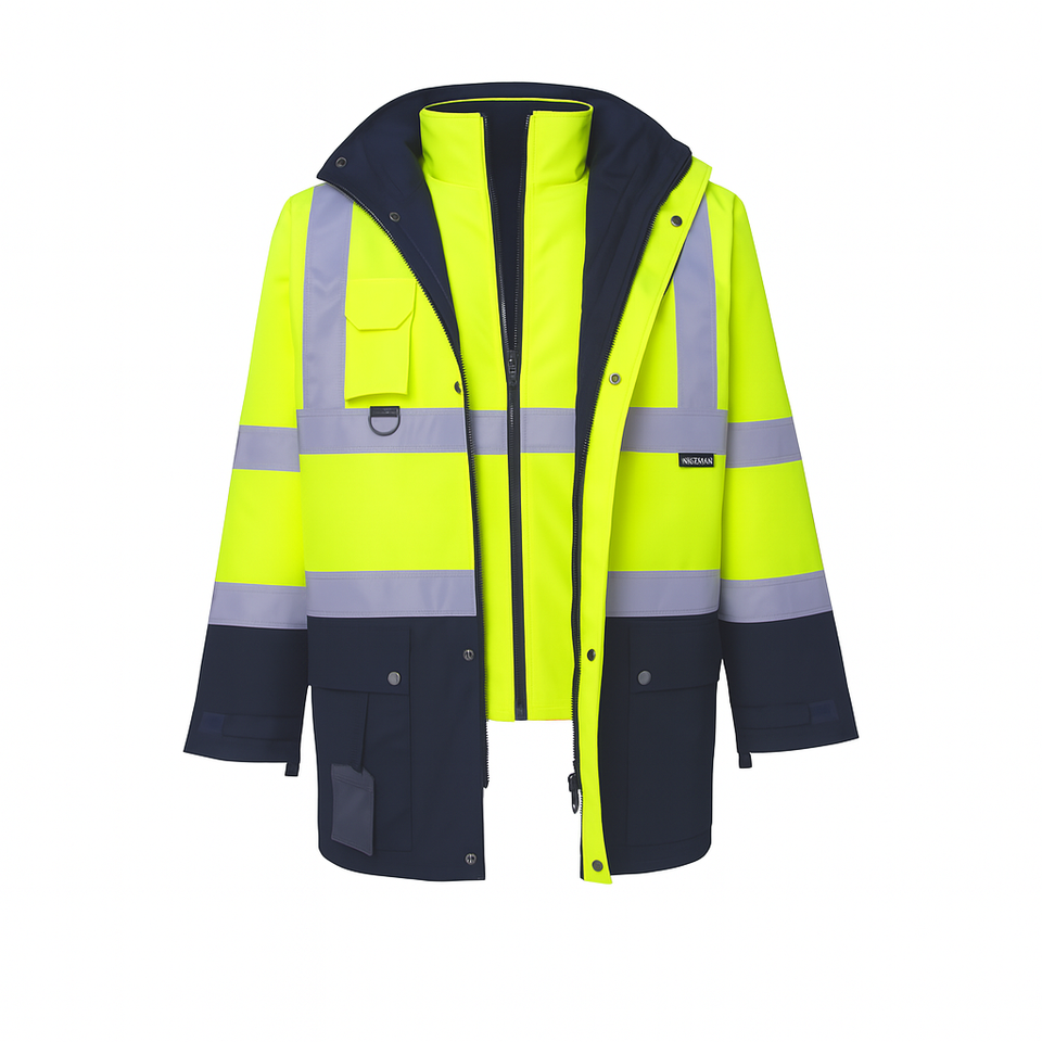 Hi-Vis 5-in-1 Waterproof Work Jacket EN ISO 20471 EN 343 Certified Safety Clothing