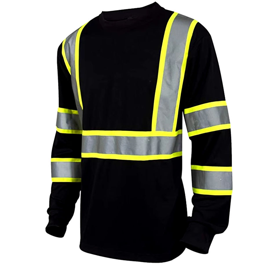 Hi Vis Construction Workwear Long Sleeve Reflective High Visibility T-Shirt with Reflective Stripes for Outdoor Safety Vest