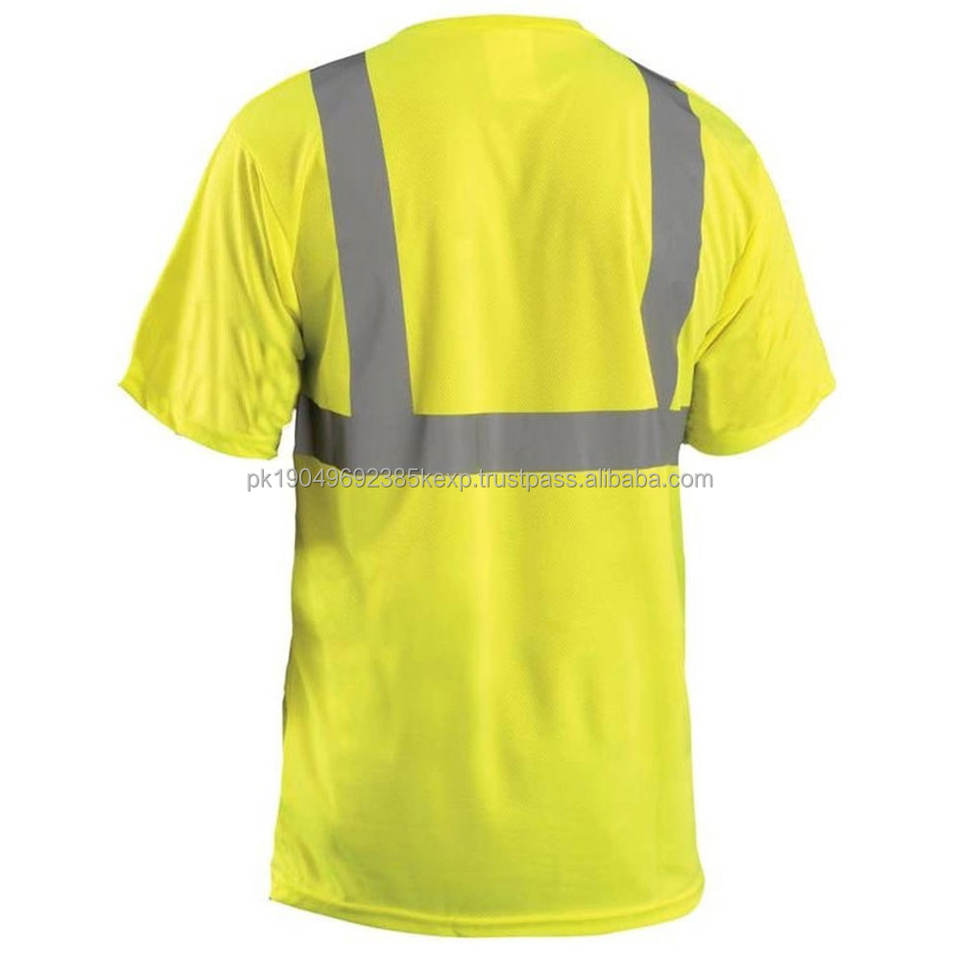 Hi Vis Men's Short Sleeve Work T-Shirts Formal Safety Reflective Strip Cotton Knitted Construction Security Wear