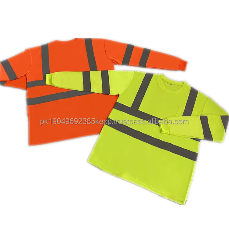 Hi Vis O Collar Work Anti-Static Waterproof Reflective T Shirt Men 140gsm Cotton Mesh Long Sleeves Blue Reflective Stripe Safety