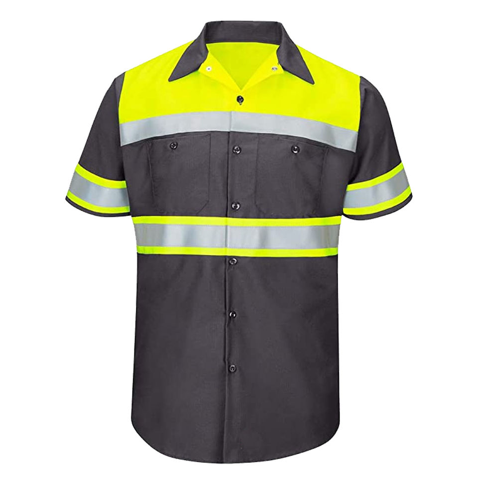 Hi Vis Reflective Polo Shirts High Visibility Safety Short Sleeve Polo Shirt with Black Bottom Orange Yellow Reflective T-Shirt
