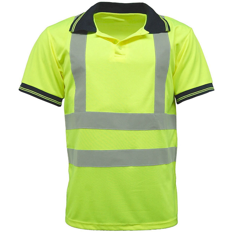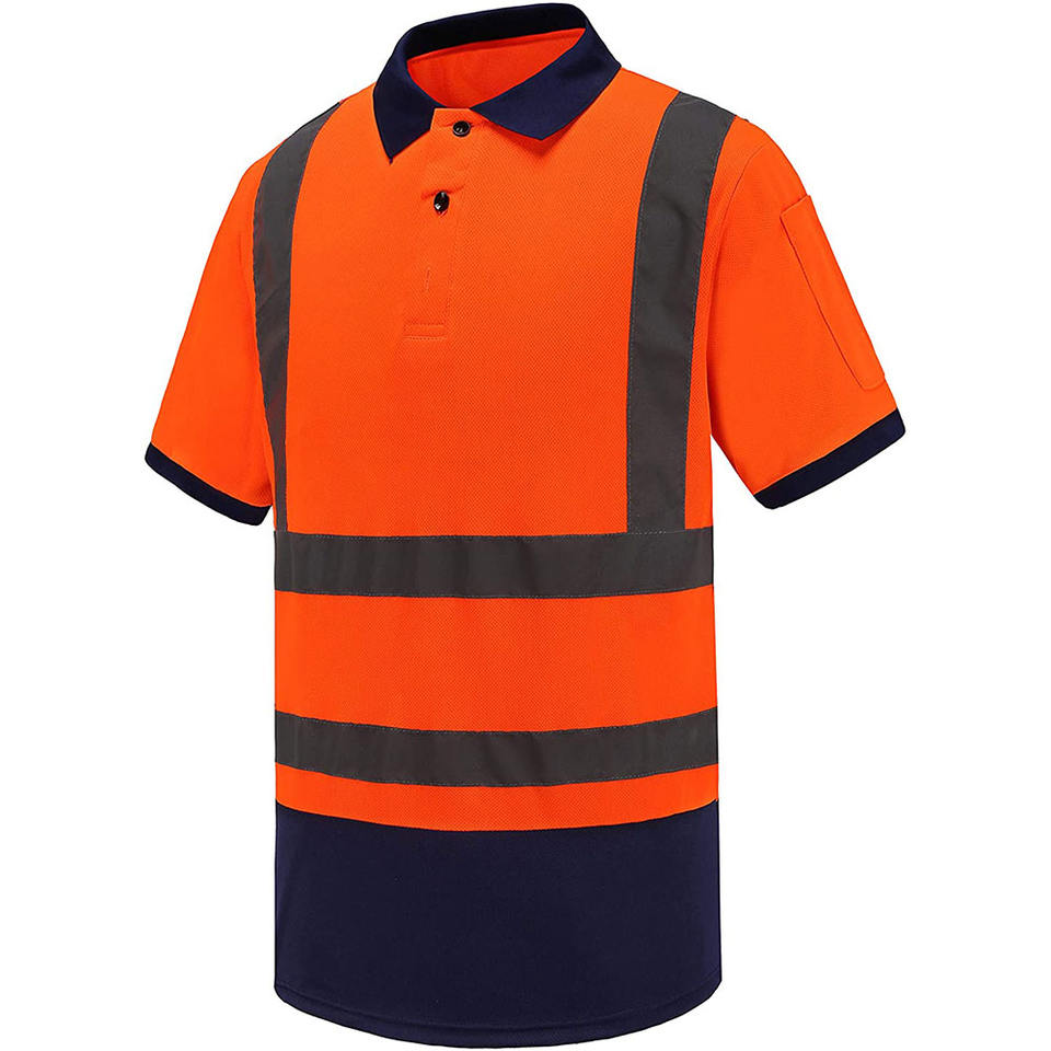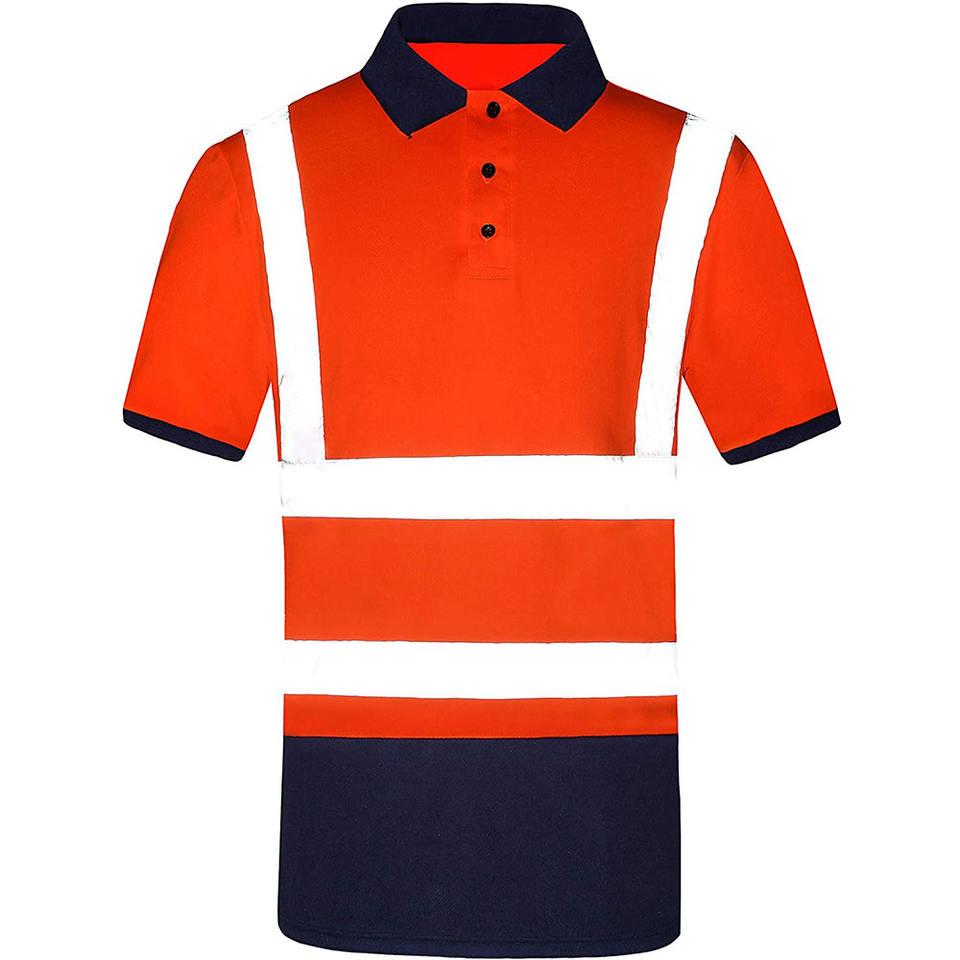 Hi Vis Reflective Polo Shirts High Visibility Safety Short Sleeve Polo Shirt with Black Bottom Orange Yellow Reflective T-Shirt