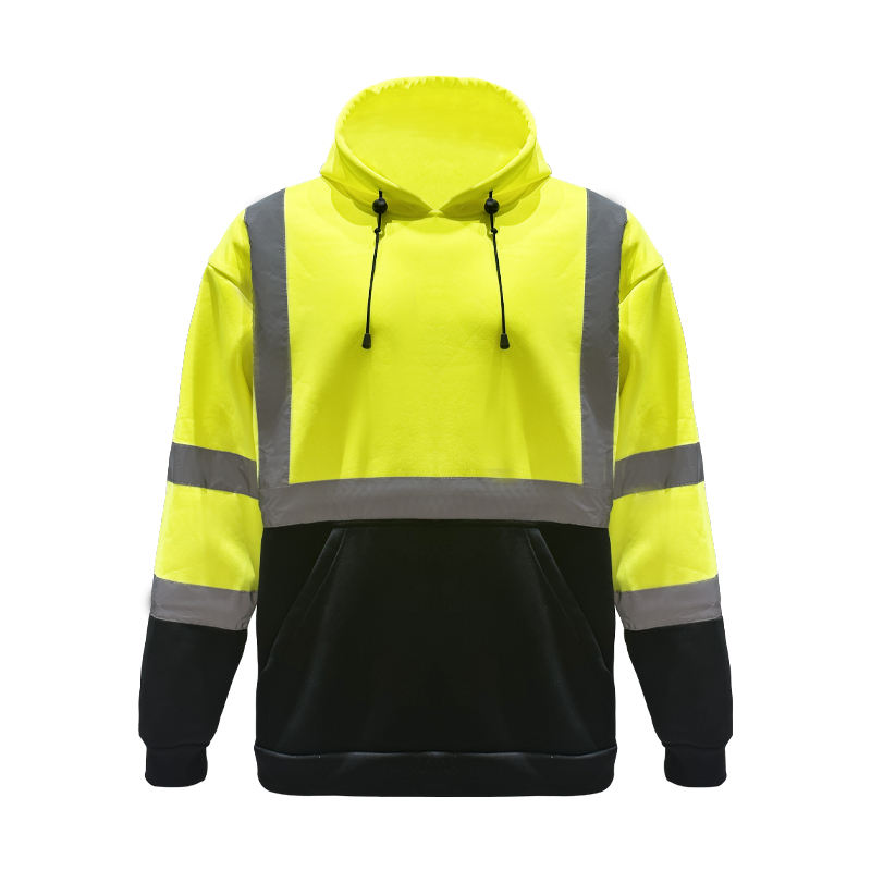 Hi Vis Safety Hoodies Jackets Black Bottom for Men-Class 3 Reflective Polyester Sweatshirt Jackets for Construction Transport