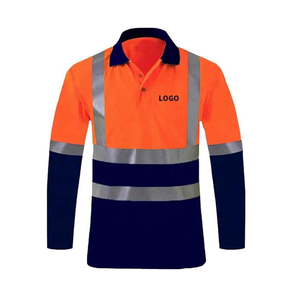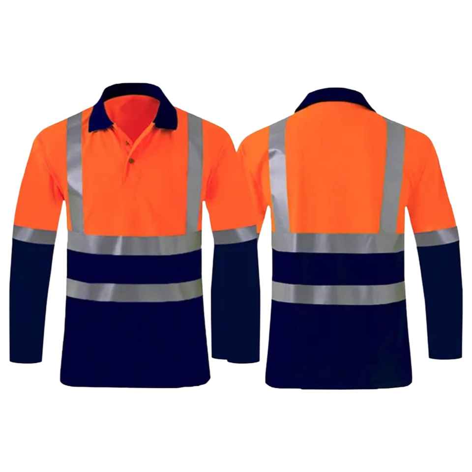 Hi Vis Workwear Safety T-Shirt Wholesale Construction Reflective Polo Shirts Long Sleeve Custom Logo Unisex FR Polyester