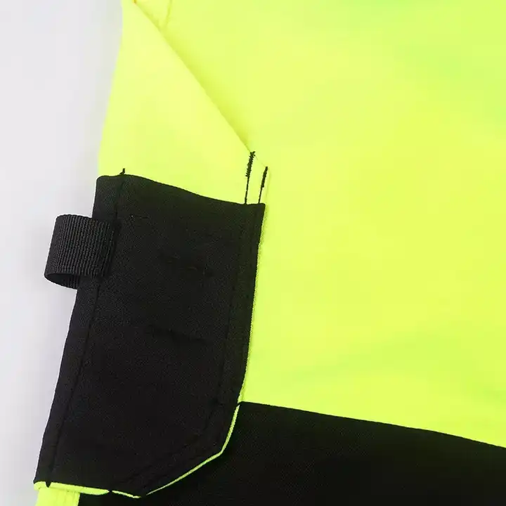 Hi Vis Fluorescent Breathable Polyester Yellow Black Reflective Cargo Work Pants Multi Pocket Industrial Trousers for