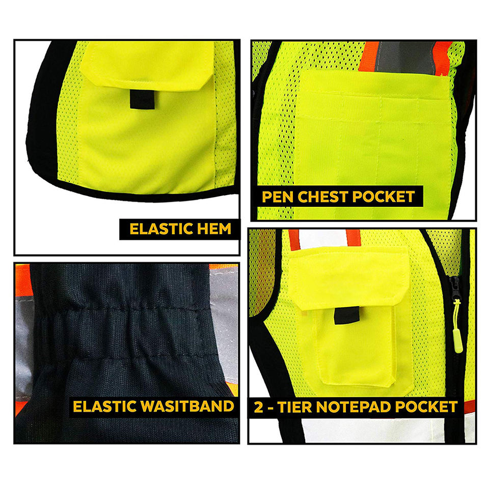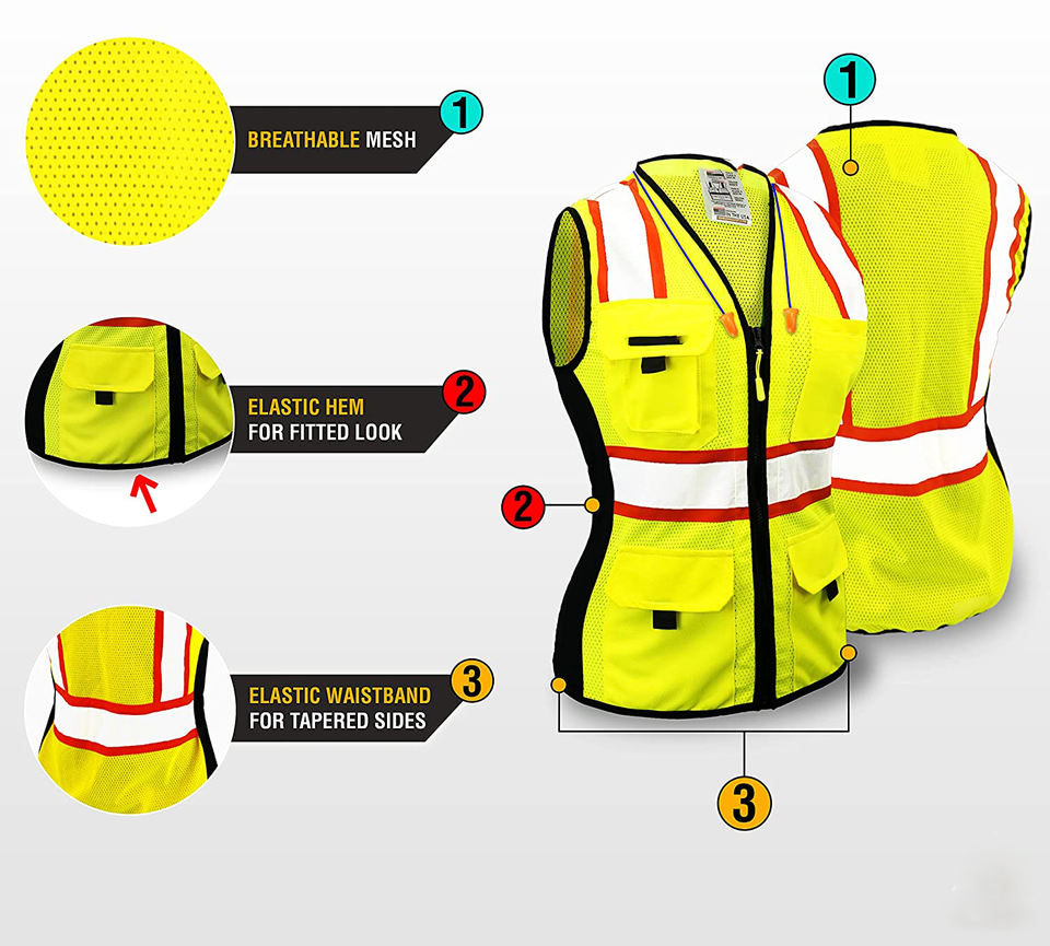 Hi Vis reflective safety clothing Vest for Ladies Nylon Construction workwear security Vest Custom Size security guard shirt