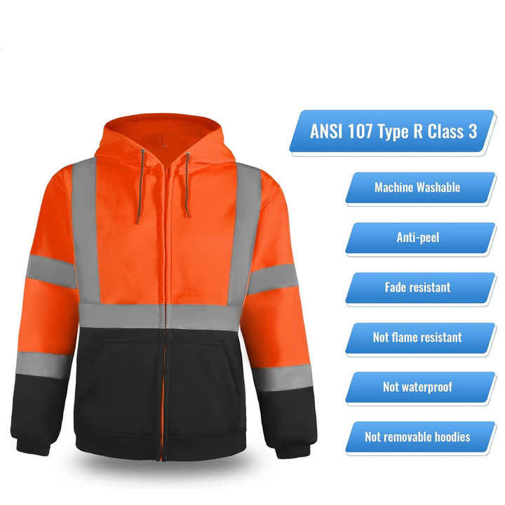 Hi Viz Men's Long Sleeve Polyester Safety Shirt Hoodie Reflective Hi Vis for Security Plus Size Workwear for Construction