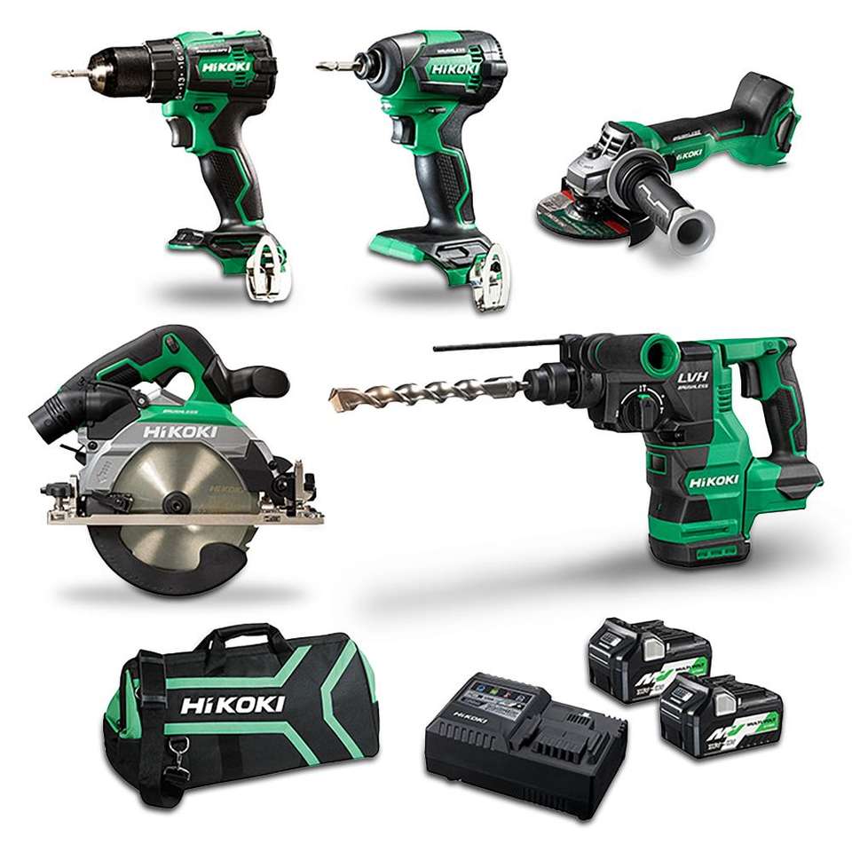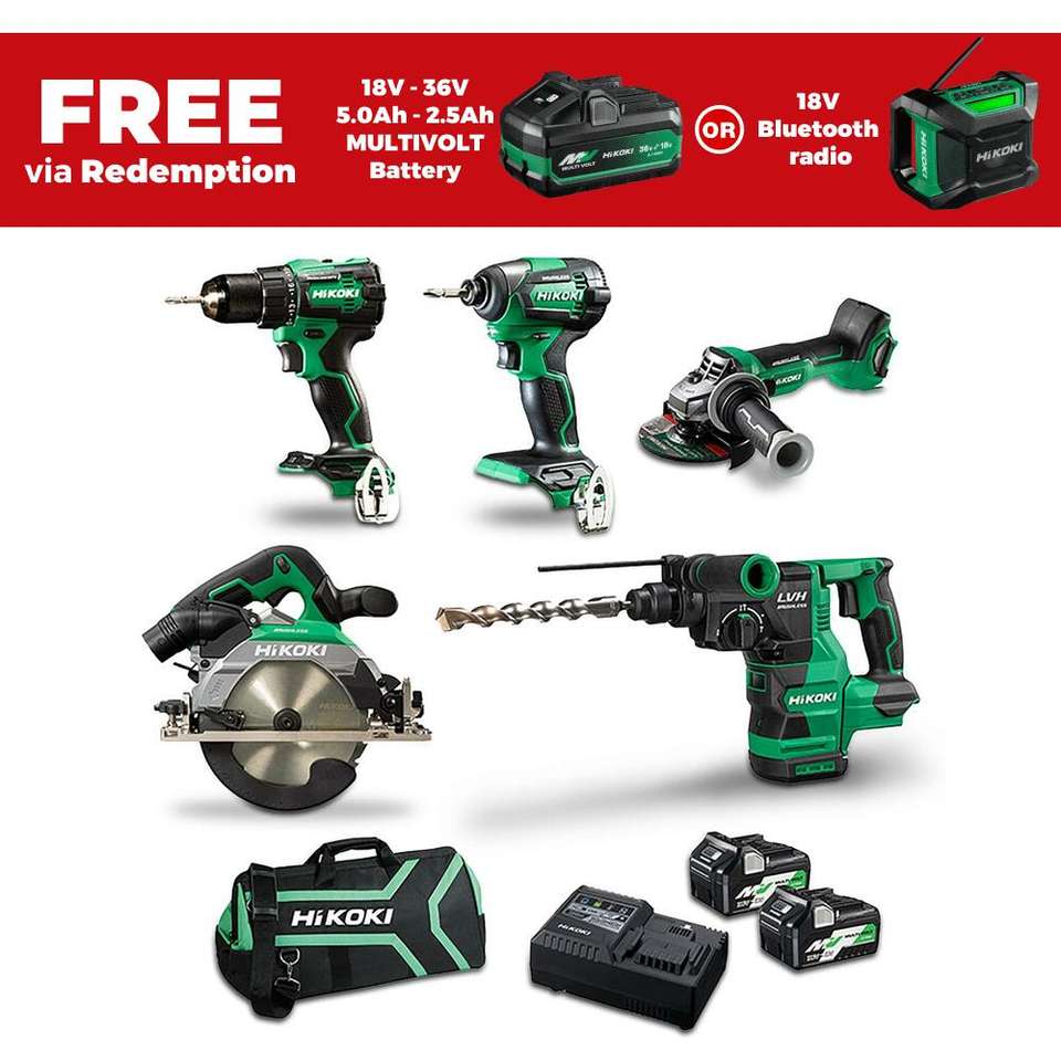 HiKOKIS KC18D5P2(HRZ) 18V 5.0Ah Single Speed Cordless Li-ion Drill Industrial DIY 5pce Combo Kit OEM Support 3-Year Warranty