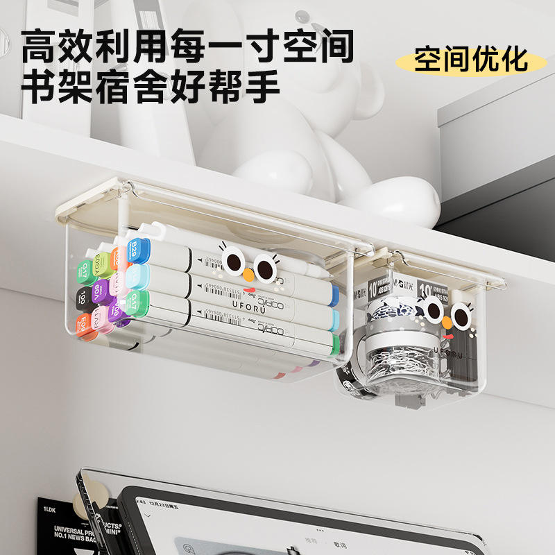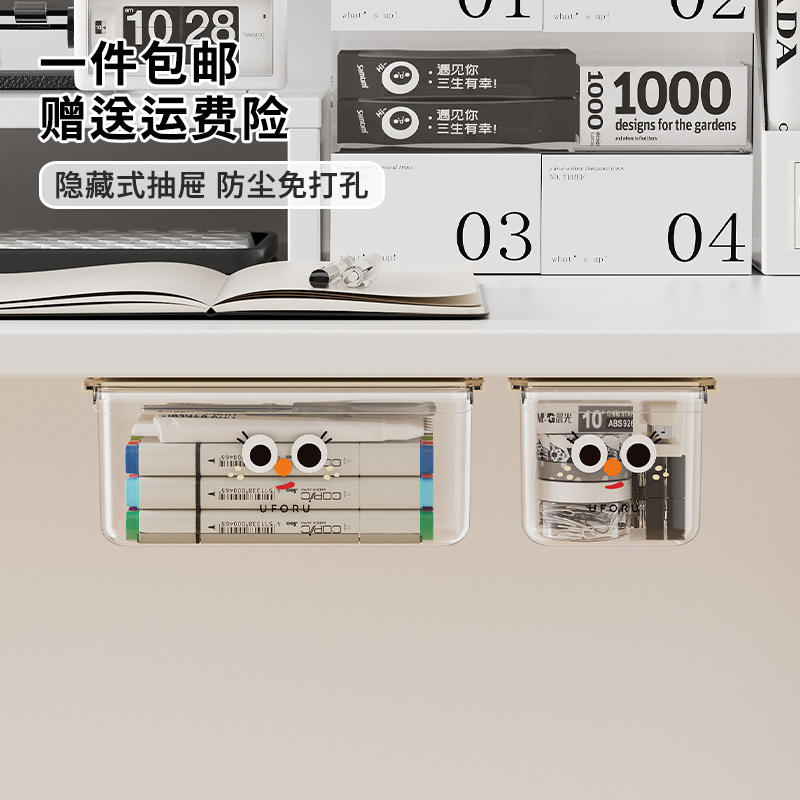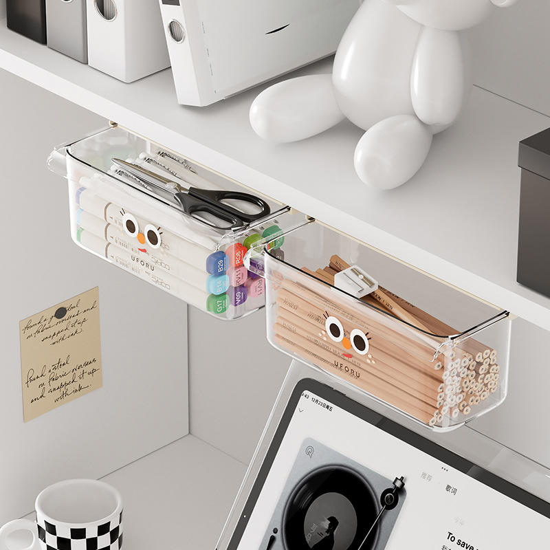 Hidden Under Desk Drawer Storage Box Transparent Hanging Office Organizer With Partitions Wall Mounted Type Rectangle Shape