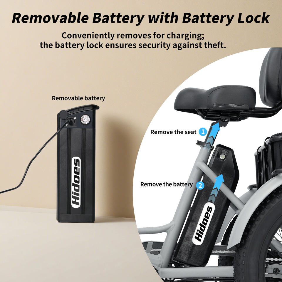 Hidoes T2 20 Inch 48v 750w Fat Tire 3 Wheels Electric Bike Carrying Electric Cargo Bike With Basket Shopping EU UK US Stock