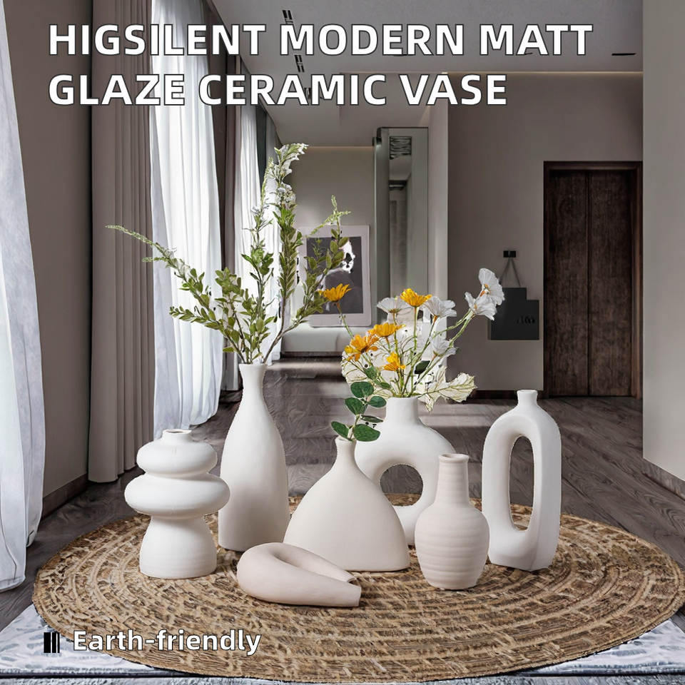 HigSilent Wind Ornament Modern Simple Artistic Tabletop Birthday Matt Glaze Handmade Eco-Friendly Lightweight Ceramic Flower